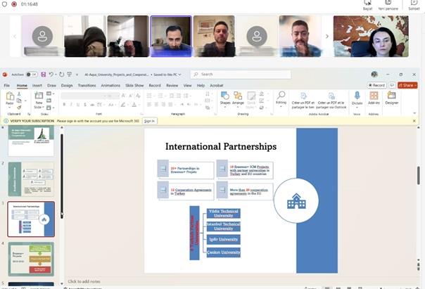 Soru-cevap ve değerlendirme bölümüyle tamamlanan toplantı, üniversiteler arasındaki diyaloğu güçlendirirken Filistin üniversiteleriyle kurulacak yeni Erasmus+ iş birlikleri açısından değerli bir adım olmuştur.